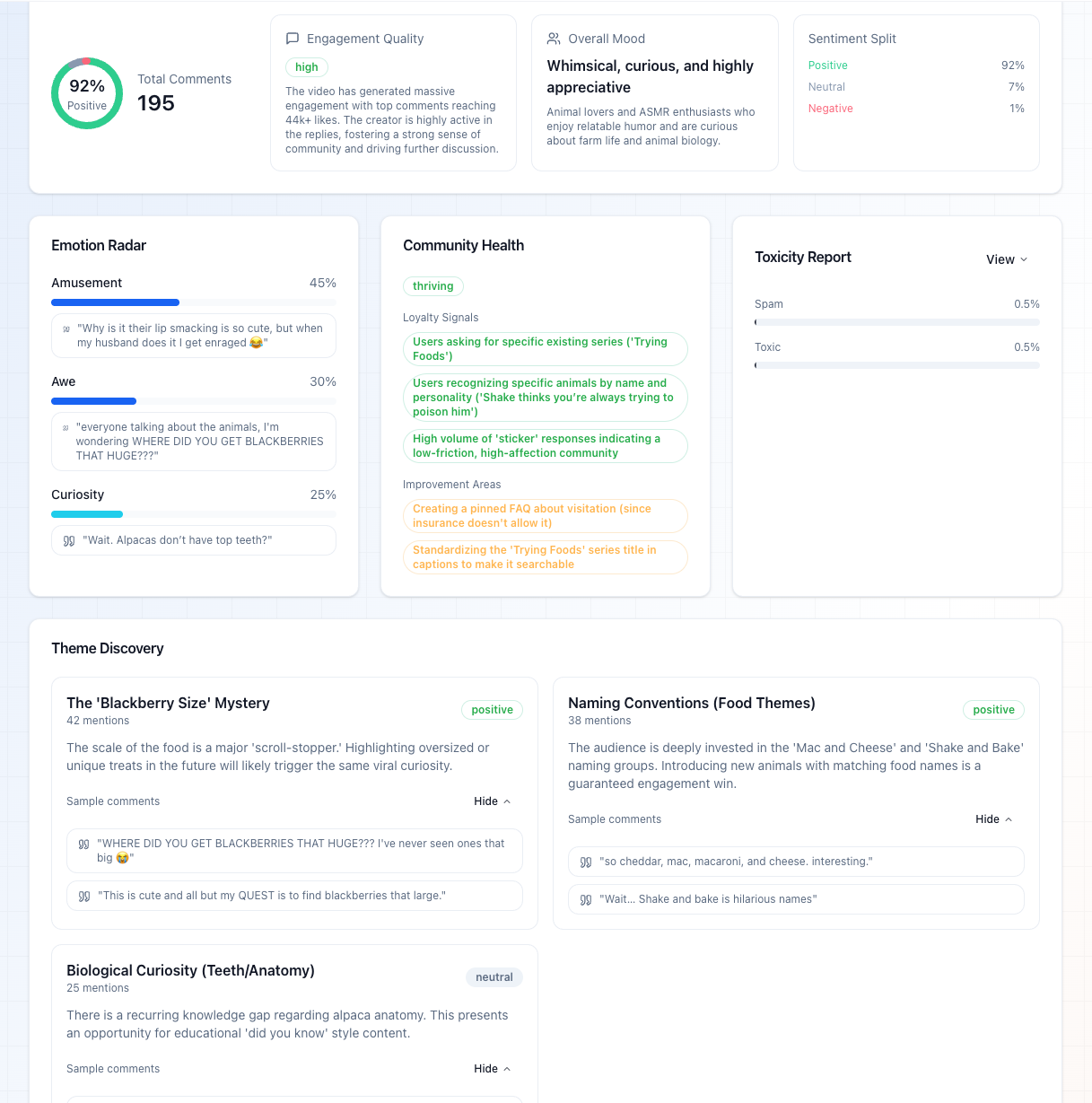 Votre prochaine idée virale se cache dans vos commentaires. Cet outil les analyse tous et extrait l'essentiel.